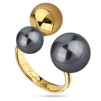 Изготовлено из ювелирного сплава на основе латуни с гальваническим покрытием золотом. Изделие украшает майорский круглый жемчуг темно-серого цвета диаметром 8 и 12мм. Безразмерное.