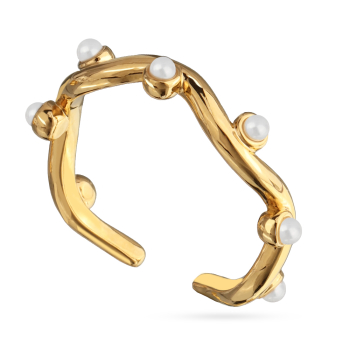 Изготовлено из ювелирного сплава на основе латуни с гальваническим покрытием золотом. Изделие украшает жемчуг Майорка белого цвета.