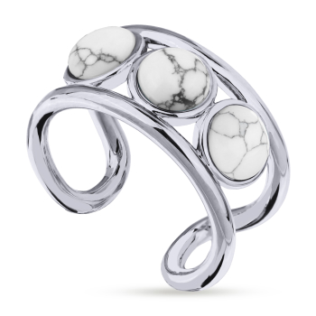 Изготовлено из ювелирного сплава на основе латуни с гальваническим покрытием родием. Изделие украшает белая бирюза. Ширина 1см.