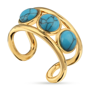 Изготовлено из ювелирного сплава на основе латуни с гальваническим покрытием золотом. Изделие украшает бирюза. Ширина 1см.