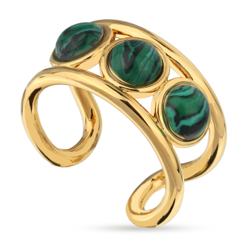 Изготовлено из ювелирного сплава на основе латуни с гальваническим покрытием золотом. Изделие украшает малахит. Ширина 1см.