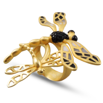 Кольцо Стрекоза (эмаль черная, серая; покрытие матовое золото), Есть комплект