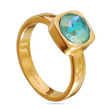 Изготовлено из ювелирного сплава на основе латуни с гальваническим покрытием золотом. Изделие украшают кристаллы SW мятного цвета диаметром 8мм.