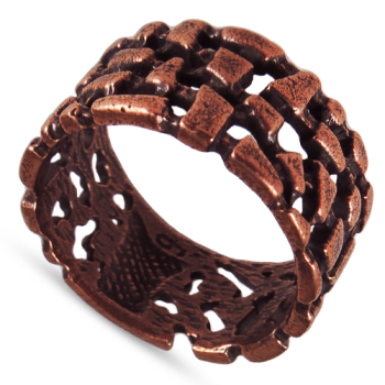 Изготовлено из ювелирного сплава на основе латуни с гальваническим покрытием медью. Ширина кольца 1см.