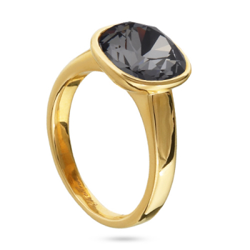 Изготовлено из ювелирного сплава на основе латуни с гальваническим покрытием золотом. Изделие украшают кристаллы SW темно-серого цвета диаметром 10мм.