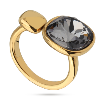 Изготовлено из ювелирного сплава на основе латуни с гальваническим покрытием золотом. Изделие украшают кристаллы SW темно-серого цвета диаметром 12мм.
