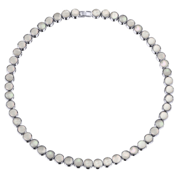 Изготовлено из ювелирного сплава на основе латуни с гальваническим покрытием родием. Изделие украшает перламутр диаметром 6мм. Длина 40-45см.