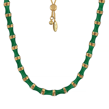 Колье Бамбук (эмаль зеленая; покрытие золото) 70см, Есть комплект