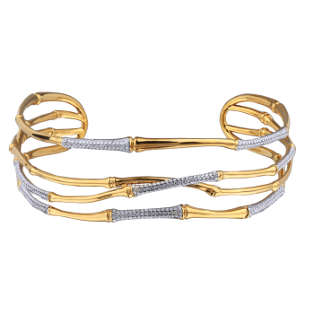 Изготовлено из ювелирного сплава на основе латуни с гальваническим покрытием золотом и родием. Изделие украшают белые кристаллы. Ширина колье 3см.