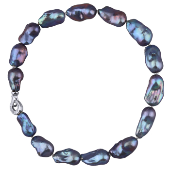 Изготовлено из ювелирного сплава на основе латуни с гальваническим покрытием родием. Колье выполнено из натурального бензинового барочного жемчуга диаметром 15-25мм и фианитов белого цвета. Длина 45см.*Цвет и форма жемчужин может отличаться от изображения