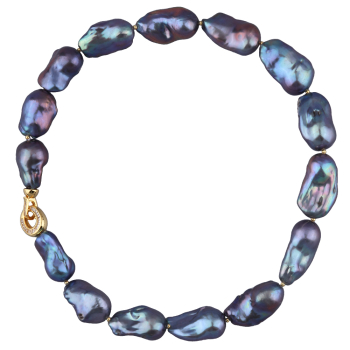 Изготовлено из ювелирного сплава на основе латуни с гальваническим покрытием золотом. Колье выполнено из натурального бензинового барочного жемчуга диаметром 15-25мм и фианиты белого цвета. Длина 45см. *Цвет и форма жемчужин может отличаться от изображенн
