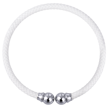 Изготовлено из ювелирного сплава на основе латуни с гальваническим покрытием родием. Изделие украшают бусина диаметром 16мм и белая натуральная кожа.