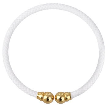 Изготовлено из ювелирного сплава на основе латуни с гальваническим покрытием золотом. Изделие украшают бусина диаметром 16мм и белая натуральная кожа.