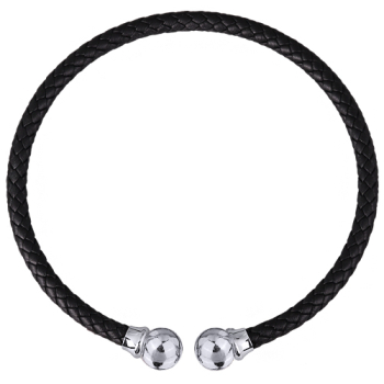 Изготовлено из ювелирного сплава на основе латуни с гальваническим покрытием родием. Изделие украшает бусина диаметром 16мм и черная натуральная кожа.
