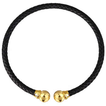 Изготовлено из ювелирного сплава на основе латуни с гальваническим покрытием золотом. Изделие украшает бусина диаметром 16мм и черная натуральная кожа.
