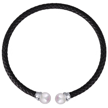 Изготовлено из ювелирного сплава на основе латуни с гальваническим покрытием родием. Изделие украшают жемчуг Майорка белого цвета диаметром 16мм и черная натуральная кожа.