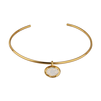 Изготовлено из ювелирного сплава на основе латуни с гальваническим покрытием золотом. Изделие украшают кристаллы SW цвета белый опал. Размер кристалла 18х13мм. Длина 38-40см.