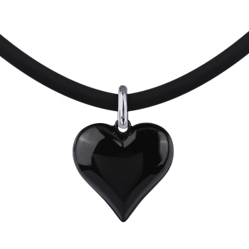 Колье-чокер Сердцебиение (2, 5см, эмаль черная, каучук черный; родий) 47-52см, Есть комплект