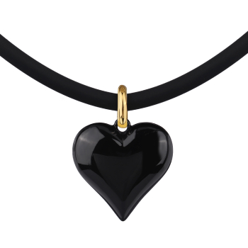 Колье-чокер Сердцебиение (2, 5см, эмаль черная, каучук черный; золото) 47-52см, Есть комплект