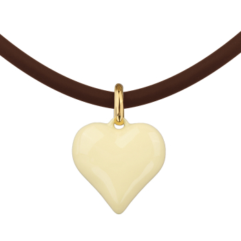 Изготовлено из ювелирного сплава на основе латуни с гальваническим покрытием золотом. Изделие украшает эмаль сливочное масло и каучук коричневого цвета. Размер кулона 2.5х2.5см. Длина шнурка 47см. Замок удлинитель 5см.