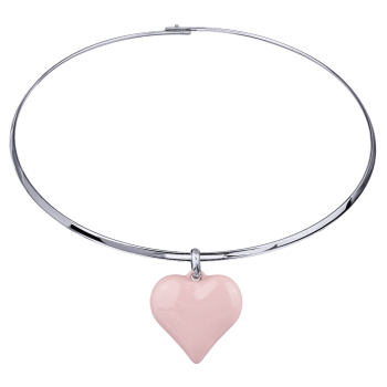Изготовлено из ювелирного сплава на основе латуни с гальваническим покрытием родием. Изделие украшает эмаль розового цвета. Размер кулона 2.5х2.5см. Длина колье 42см.