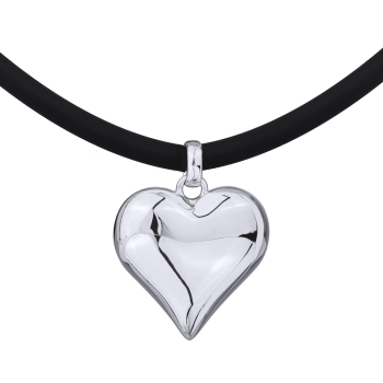 Колье-чокер Сердцебиение (2.5см, каучук черный; покрытие родий) 47-52см, Есть комплект