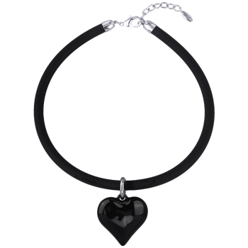 Колье-чокер Сердцебиение (4, 2см, эмаль черная, каучук черный; родий) 43-48см, Есть комплект