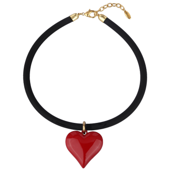 Колье-чокер Сердцебиение (4, 2см, эмаль красная, черный; золото) 48см, Есть комплект