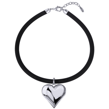 Колье-чокер Сердцебиение (4.2см, каучук черный; покрытие родий) 43-48см, Есть комплект