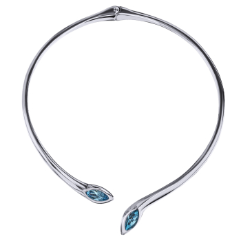 Изготовлено из ювелирного сплава на основе латуни с гальваническим покрытием родием. Изделие украшают кристаллы SW цвета аквамарин.