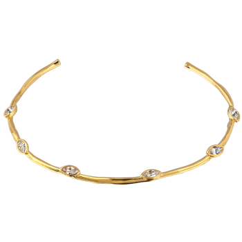 Изготовлено из ювелирного сплава на основе латуни с гальваническим покрытием золотом. Изделие украшают кристаллы SW белого цвета. Длина колье 37см.