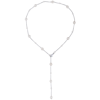 Колье Элегантность (жемчуг белый 4-10мм; покрытие родий 60см)