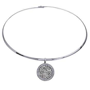 Изготовлено из ювелирного сплава на основе латуни с гальваническим покрытием родием. Изделие украшают кристаллы SW серебристого цвета. Диаметр украшения 2см. Длина колье 42см.