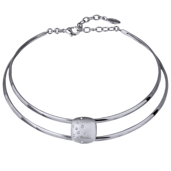 Изготовлено из ювелирного сплава на основе латуни с гальваническим покрытием сатиновым родием. Изделие украшают кристаллы SW белого цвета. Длина колье 36-38см.