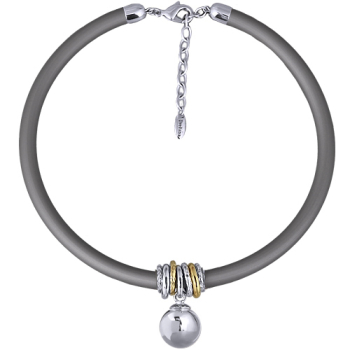 Изготовлено из ювелирного сплава на основе латуни с гальваническим покрытием родием и золотом. Изделие украшает бусина диаметром 16мм. Длина серого каучукового шнурка 40см, диаметр 8мм. Замок-карабин с удлинителем 5см.