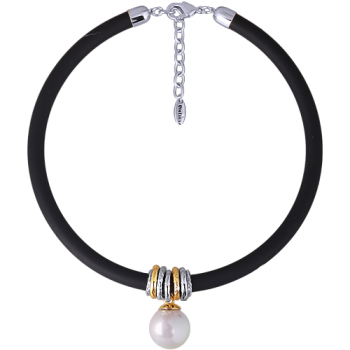 Колье Гевея (Майорка 16мм белая, каучук черный; покрытие родий) 40-45см, Есть комплект