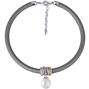 Колье Гевея (Майорка 16мм белая, каучук серый; покрытие родий) 40-45см, Есть комплект