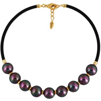 Изготовлено из ювелирного сплава на основе латуни с гальваническим покрытием золотом. Изделие украшает жемчуг Майорка диаметром 16мм цвета бургунди хамелеон. Длина черного каучукового шнурка 45см. Замок-карабин с удлинителем 5см.