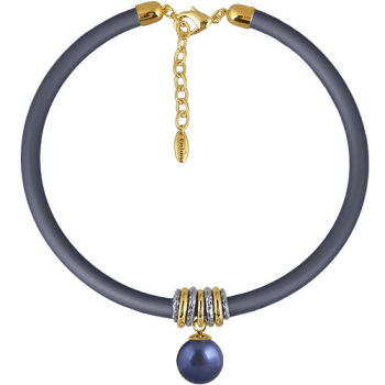 Изготовлено из ювелирного сплава на основе латуни с гальваническим покрытием золотом и родием. Изделие украшает круглый жемчуг Майорка черничного цвета диаметром 16мм. Длина графитового каучукового шнурка 40см, диаметр 8мм. Замок-карабин с удлинителем 5см