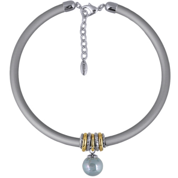 Колье Гевея (Майорка 16мм голубая, каучук серый; покрытие родий) 40-45см, Есть комплект