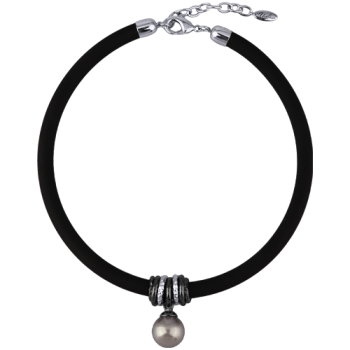 Изготовлено из ювелирного сплава на основе латуни с гальваническим покрытием родием и черным родием. Изделие украшает круглый жемчуг Майорка серо-голубого цвета диаметром 16мм. Длина черного каучукового шнурка 19см, диаметр 8мм. Замок-карабин с удлинителе