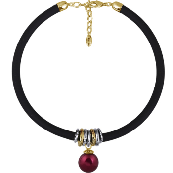 Изготовлено из ювелирного сплава на основе латуни с гальваническим покрытием золотом и родием. Изделие украшает круглый жемчуг Майорка малинового цвета диаметром 18мм. Длина черного каучукового шнурка 40см, диаметр 8мм. Замок-карабин с удлинителем 5см.