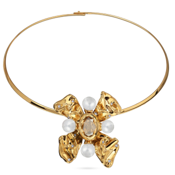 Колье Грациоза (кристаллы SW шампань, Майорка белая; покрытие золото), Есть комплект