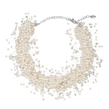 Колье Грозди (Майорка белая 3-7мм, SW белые; покрытие родий) 45-52см, Есть комплект