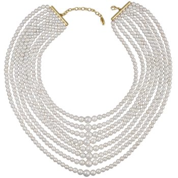 Изготовлено из ювелирного сплава на основе латуни с гальваническим покрытием золотом. Выполнено из белого жемчуга Майорка диаметром 6-10мм. Длина 42см. Замок-карабин с удлинителем 6см