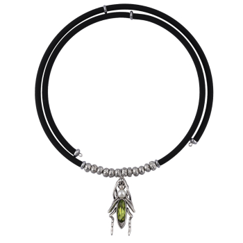Колье Кузнечик (кристаллы SW зеленые, Майорка; покрытие античное серебро), Есть комплект