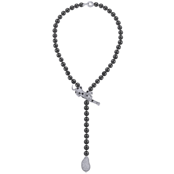 Колье Леопард (Майорка темно-серая 10мм, фианит; покрытие родий) 55см, Есть комплект