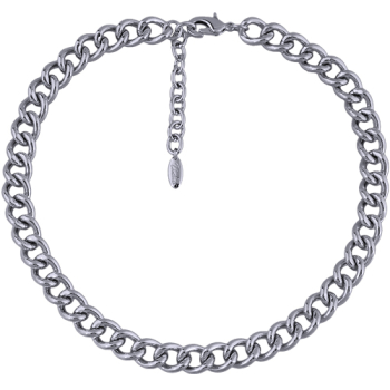 Изготовлено из ювелирного сплава на основе латуни с гальваническим покрытием родием. Ширина 1см. Длина колье 43см. Замок-карабин с удлинителем 5см.