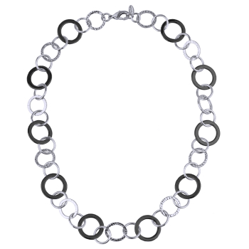 Изготовлено из ювелирного сплава на основе латуни с гальваническим покрытием родием и черным родием. Длина 59см.