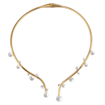 Изготовлено из ювелирного сплава на основе латуни с гальваническим покрытием золотом. Изделие украшает майорский круглый жемчуг темно-серого цвета диаметром 4-10мм. Пружинный механизм отвода.
